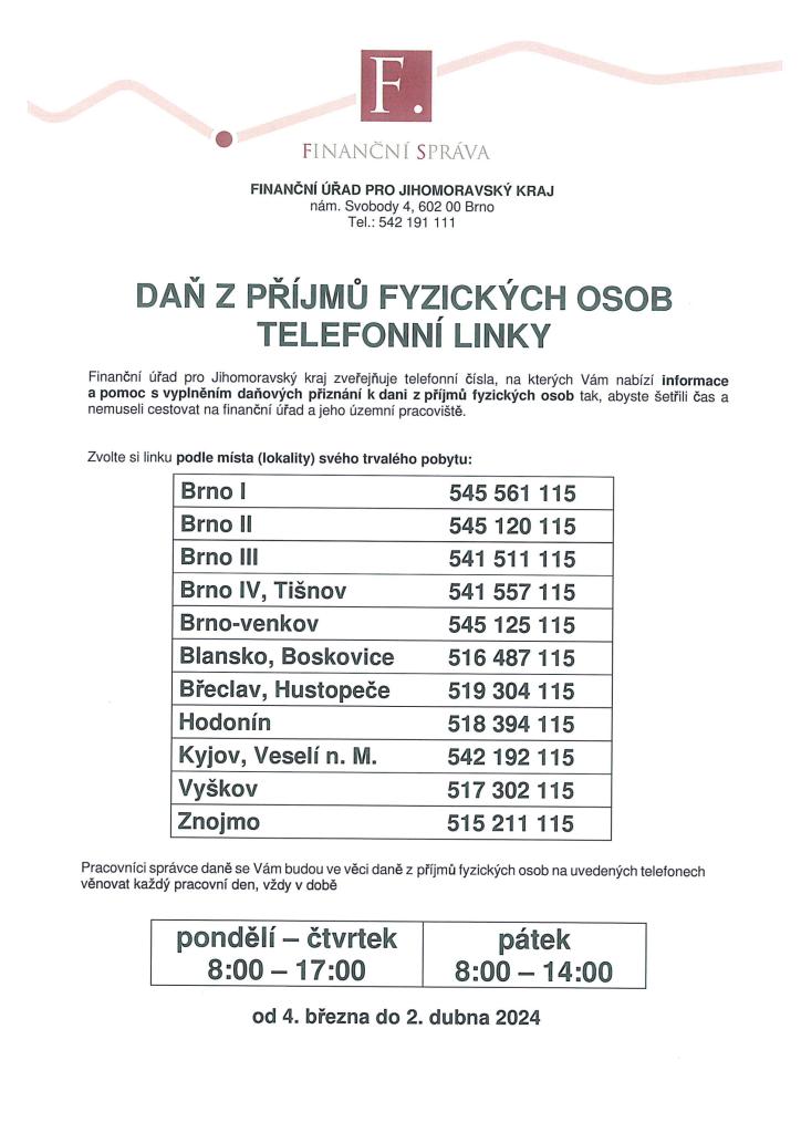 Finanční úřad - Infolinka k dani z příjmů fyzických osob