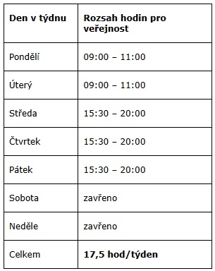 Trvalé hodiny pro veřejnost od 1.6.2025