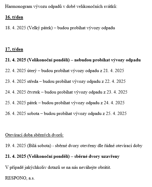 Respono - vývozy odpadů v době velikonočních svátků