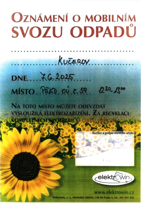 Připomínáme občanům, že POPLATKY ZA KOMUNÁLNÍ ODPAD, ZA PSA A NÁJMY POZEMKŮ je třeba uhradit do 31.3.2026.
